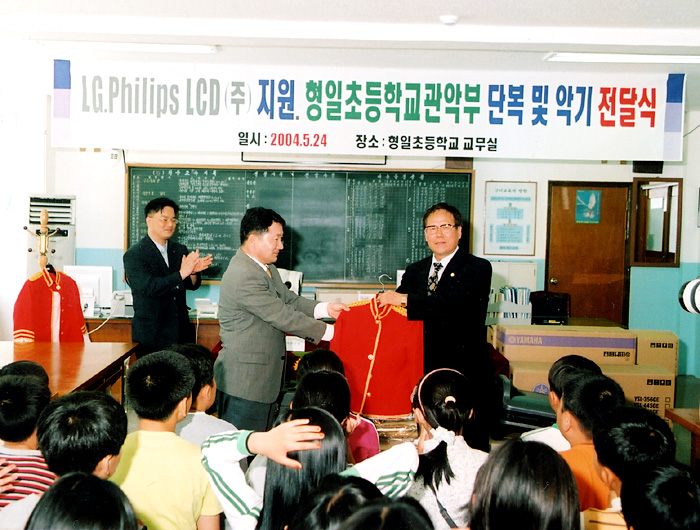 이날 행사에서 LG 필립스 LCD(주)는 관악부 단복 100벌과 섹소폰 등 악기 6점을 학교측에 전달했다.