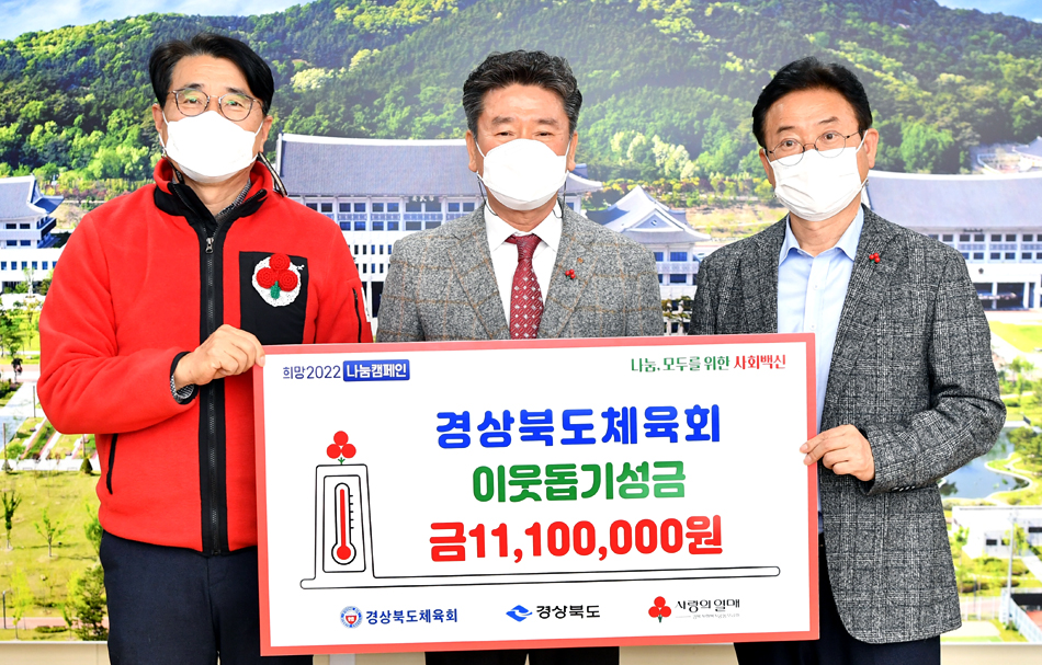 경북도체육회(회장 김하영)는 지난 4일 ‘희망2022 나눔캠페인’에 동참하며 이웃돕기 성금 1,100만원을 전달했다.