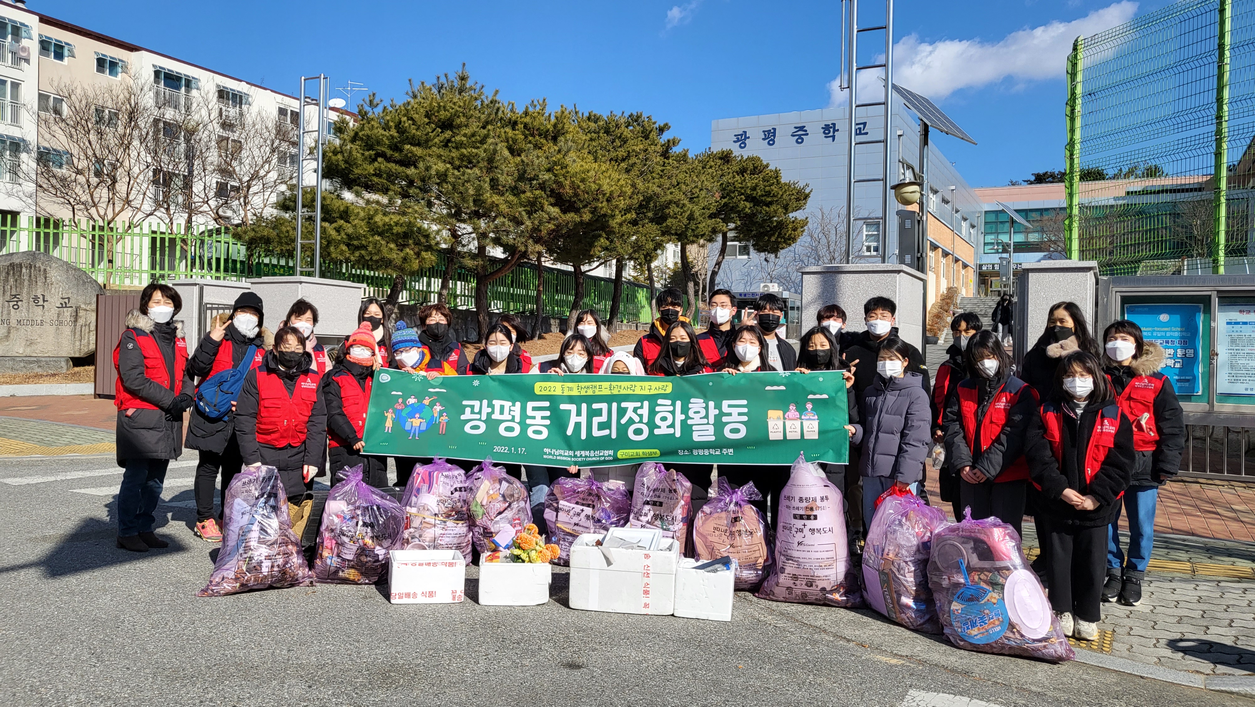마스크를 착용하고, 발열 체크를 한 20여 명 학생들이 소규모로 팀을 나눠 청소를 진행했다. 인근 광평동행정복지센터와 시민운동장을 경유하는 3km 구간이었다. 주거지구와 상업지구를 따라 무심코 버려진 쓰레기들이 산재했다. 추운 날씨에도 학교 주변 쓰레기를 치우고, 쾌적한 환경조성에 앞장선 학생들은 시종일관 밝은 모습이었다.