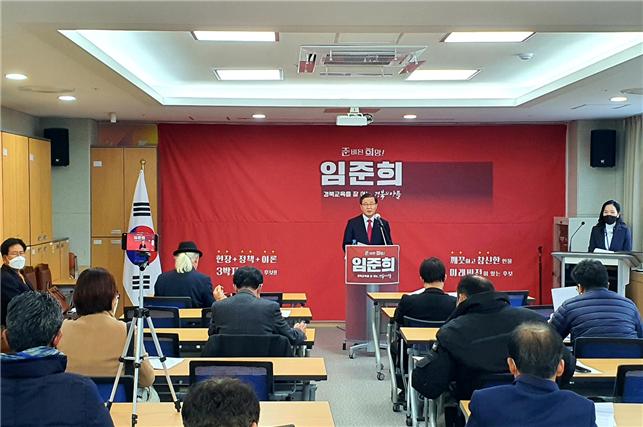 임준희(59) 전 대구교육청 부교육감이 지난 25일 경북교육청 브리핑실에서 경북교육감 출마선언 기자회견을 가졌다. 임 전 부교육감은 이 자리에서 30여년간 중앙부처와 청와대, 시·도교육청(부교육감), 국립대 등에서 교육정책을 기획하고 법제화해온 교육정책전문가로서 그간 쌓아온 정책 경험과 역량, 인적네트워크를 활용해 경북교육의 획기적 대전환에 헌신하고자 경북교육감 선거에 출마한다고 밝혔다.