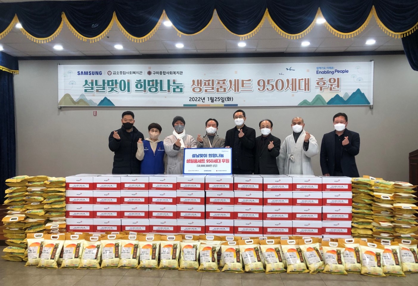 삼성전자 스마트시티는 매년 설 명절을 맞아 이웃 나눔 물품을 꾸준히 전달 해오고 있다. 이번 설날에도 백미(4kg) 300포와 5천만원 상당의 생필품 950세트를 37개소의 구미시 사회복지시설을 통해 전달했다.