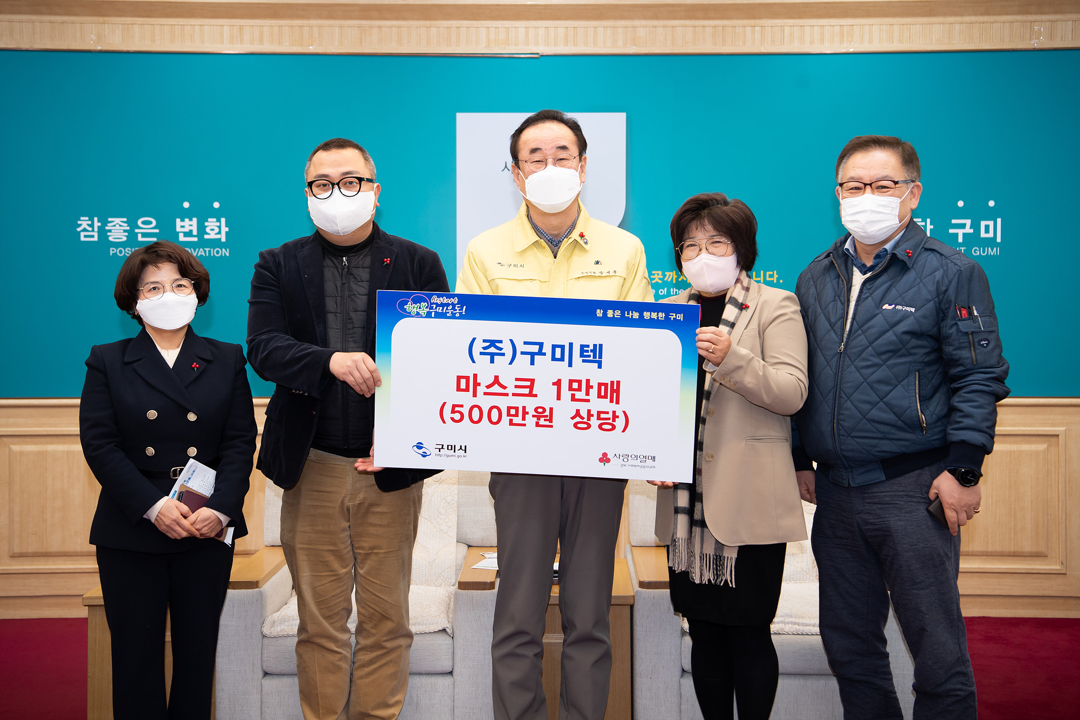 한편, 이날 기탁된 마스크는 구미시어린이집연합회를 통해 관내 어린이집 영유아들에게 사용될 예정이다.