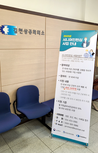 김천상공회의소(회장 안용우)는 만60세 이상 노년층의 일자리 촉진을 위해 보건복지부 산하 한국노인인력개발원으로부터 「2022년도 시니어인턴십」사업을 위탁하여 진행한다.
