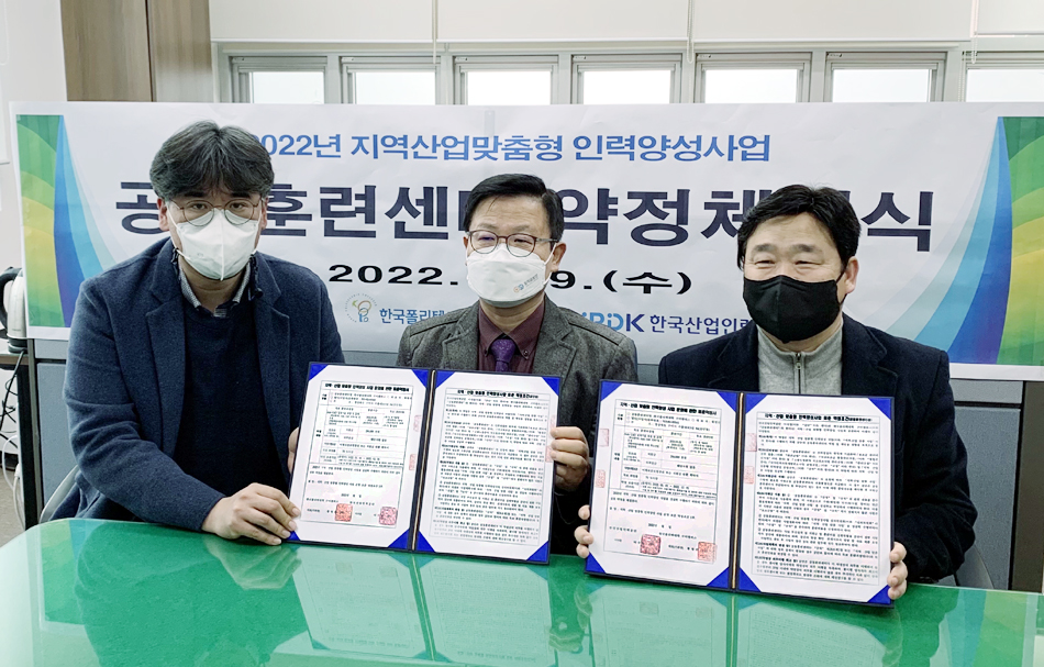 9일 체결식에는 김태균 한국산업인력공단 경북서부지사 지역일학습지원부장, 남지훈 경북지역 인적자원개발위원회 팀장, 김종보 한국폴리텍대학 구미캠퍼스 산학협력처장 등이 참석했다.