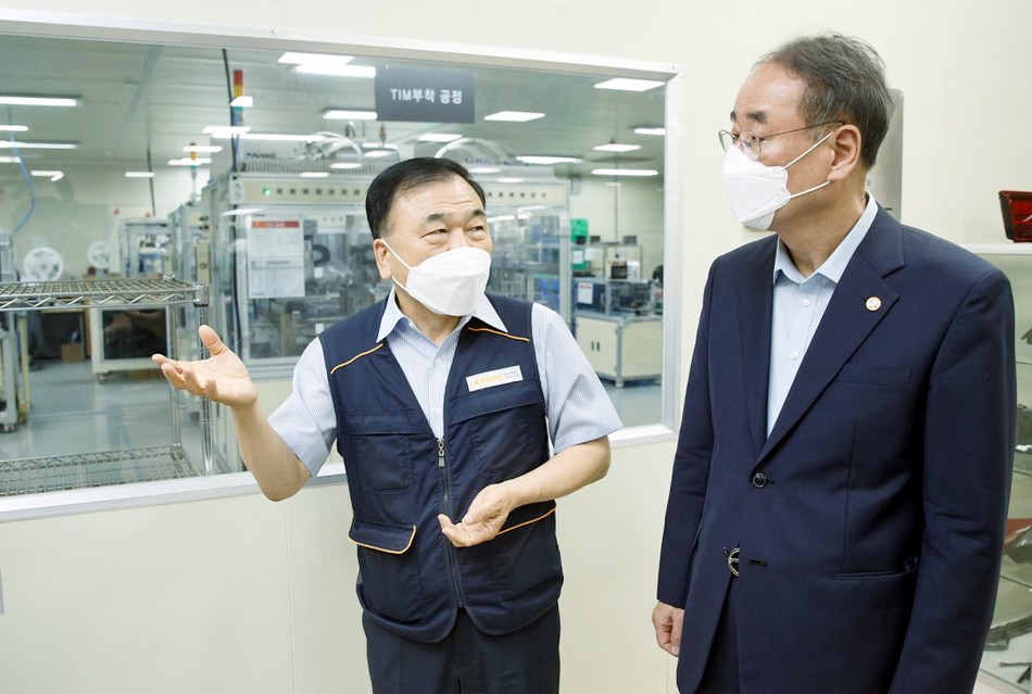 | ↑↑ 장세용 구미시장은 지난 10일 관내 소재 자가검사키트 제조업체인 ‘인탑스㈜ 구미공장’을 찾아 현장 근무자를 격려했다. |