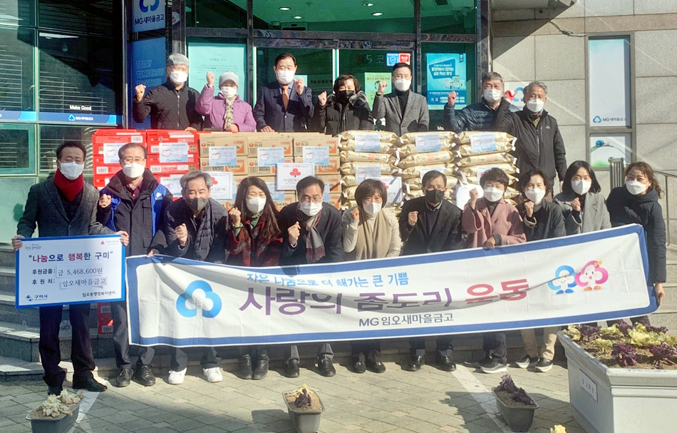 김진오 임오동장은 “매년 좀도리 운동을 통해 관내 어려운 이웃들을 먼저 생각해 주는 새마을 금고에 매우 감사드리며, 복지사각지대 등 주변의 소외된 이웃들에게 지속적인 관심을 가져주시기를 부탁드린다.”고 말했다.