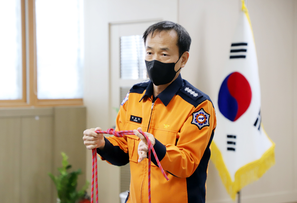 정훈탁 구미소방서장은 지난 11일 각종 재난현장에서 안전하고 효율적인 현장활동을 위해‘현장활동 필수 로프매듭법’ 특강을 가졌다.