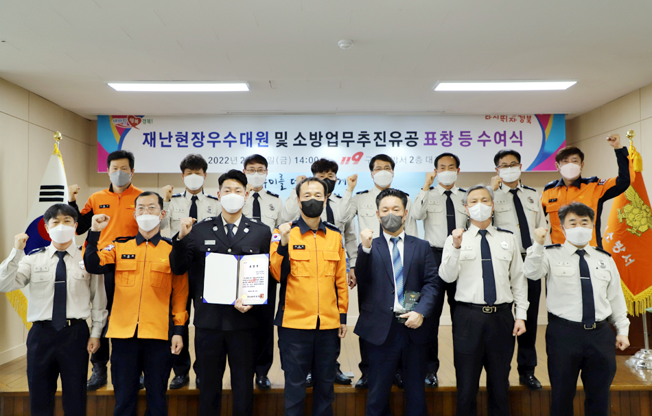 지난 9일 신고를 받고 출동한 송준엽 대원은 시민 3명이 배터지 중앙에 빠진 것을 목격하고 수난장비를 이용하여 신속히 구조 후 보온조치를 실시하여 수난사고 인명 구조 활동에 큰 기여를 했다.
