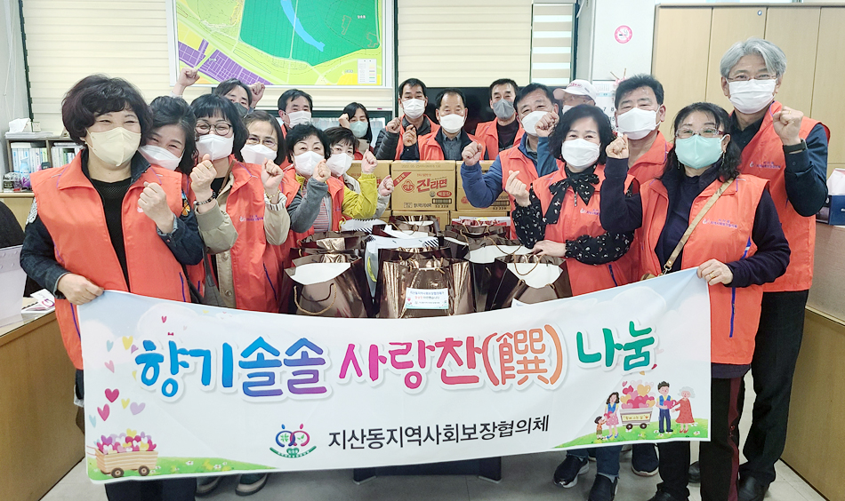 지산동(동장 강창조)에서는 지난 16일 지산동지역사회보장협의체(위원장 한경화) 위원 20여명이 참석한 가운데 3월 정례회의를 개최하고 회의 후 관내 독거노인 및 취약계층 15가구를 대상으로 ‘향기솔솔∼ 사랑찬(饌) 나눔’사업을 실시했다.