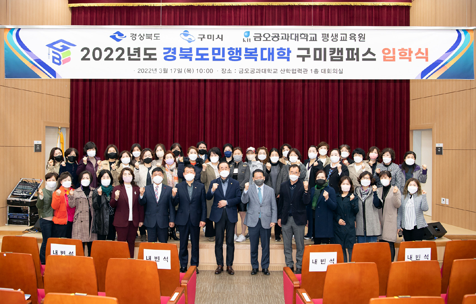 경북도민행복대학은 수준높은 교육서비스와 다양한 지역 인적·물적 자원 발굴과 연계로 지역 시민 리더 양성과 경북형 행복학습 공동체 문화를 확산하기 위해 2022년 경북도와 19개 시군 캠퍼스가 경북만의 차별화된 학사시스템으로 운영하며 구미시 캠퍼스는 국립금오공과대학교 평생교육원이 구미캠퍼스 위탁사업에 최종 선정되어 ‘평생학습 문화공동체 경북, 미래형 학습도시 건설’을 비전으로 구미시민들과 동반 성장하는 사업으로 추진할 계획이다.