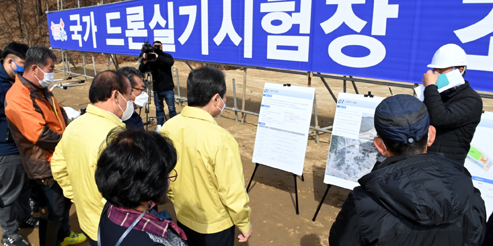 덕촌리 부지에는 드론 실기시험을 위한 실기시험장(90m×40m) 4개, 고정익 드론의 이착륙을 위한 비행활주로(200m×20m) 1개 그리고 헬리패드와 관제시설, 정비동, 운영센터 등이 구축된다. 작년(2021년) 말 토목 공사에 착수했으며, 2023년도 완공 예정이다.