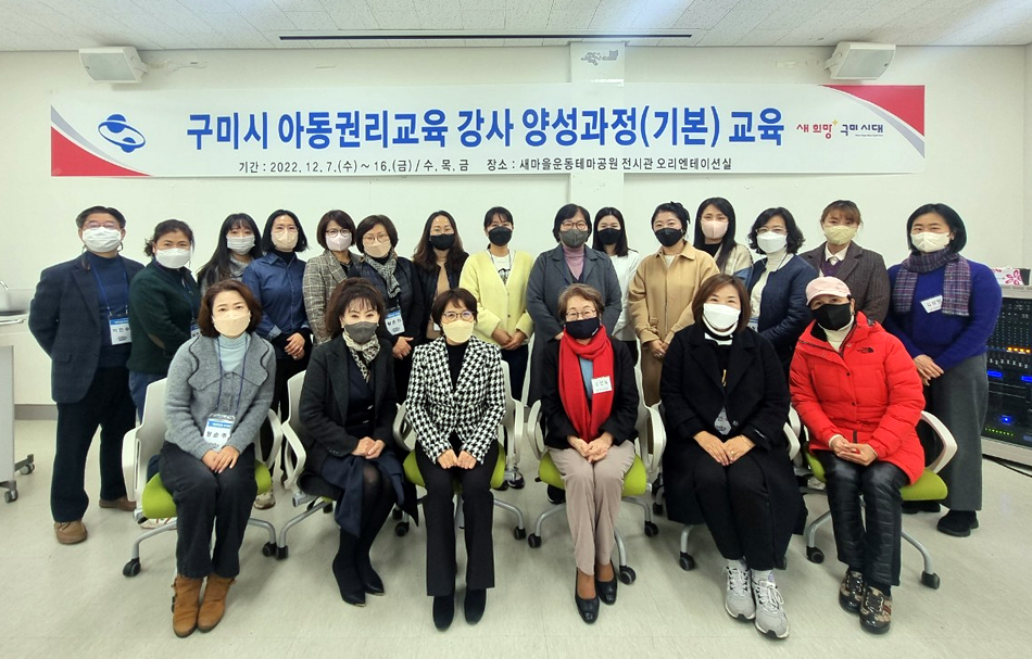 구미시 아동권리교육 강사 양성교육이 지난 7일부터 16일까지 새마을운동테마공원에서 아동권리 및 홍보에 관심이 많은 시민 20명을 대상으로 실시된다.