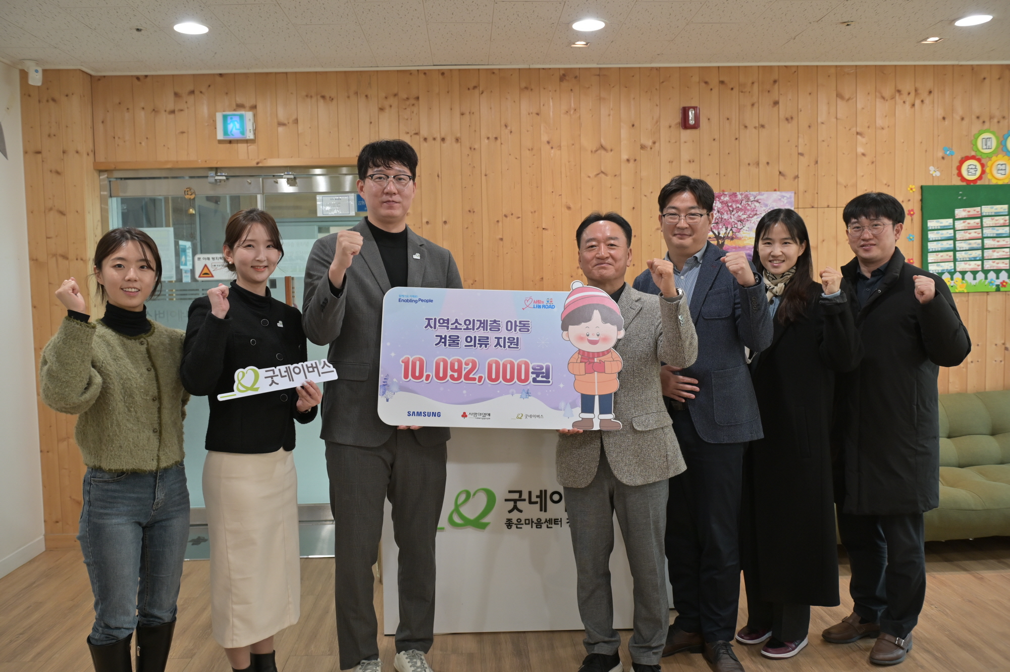 송일수 굿네이버스 좋은마음센터 경북서부 센터장은 “지역사회 내 소외된 아동을 위해 나눔에 앞장서 준 삼성전자 스마트시티 임직원에게 감사드리며 전달받은 후원금은 지역 내 아동이 어려움 없이 일상생활을 해나가는 데 사용될 수 있도록 소중하게 전달하겠다.”고 전했다.