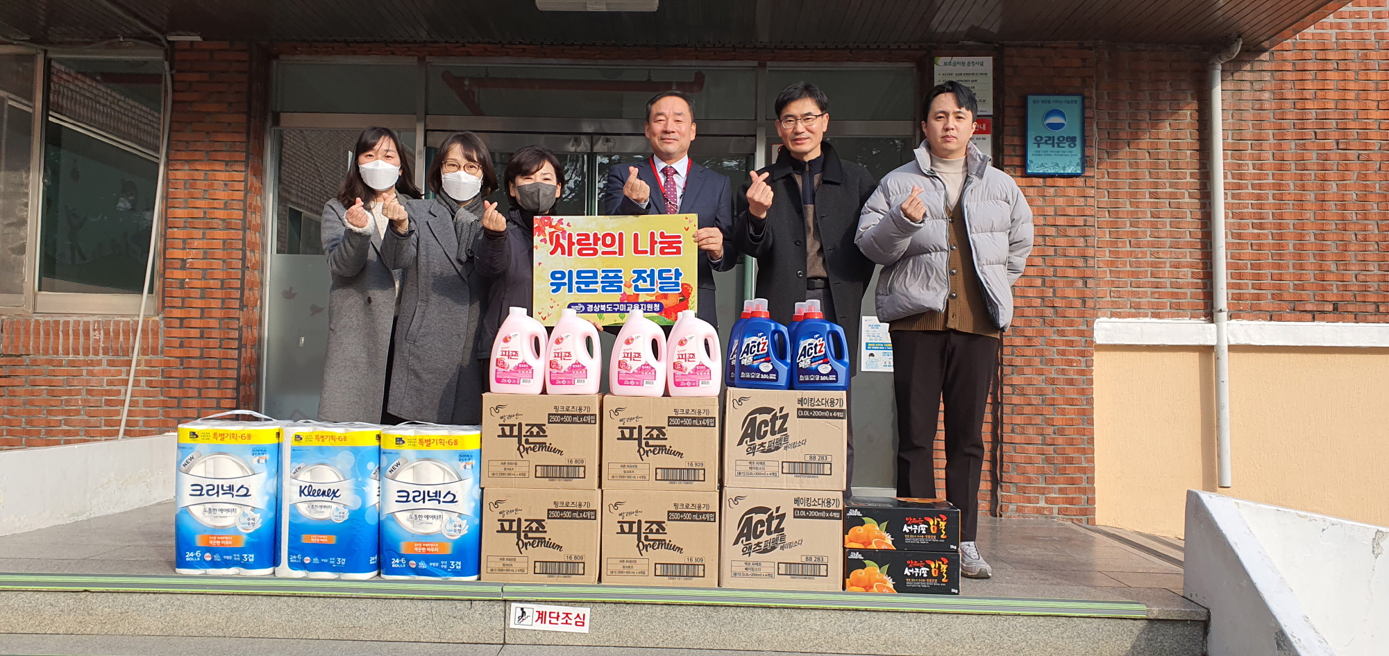 구미교육지원청(교육장 이성희)은 지난 22일 연말을 앞두고 관내 아동 복지시설인 삼성원과 장애인 복지시설인 (사)경상북도장애인부모회 구미시지부를 방문하고 세제, 화장지 등 위문품을 전달했다.