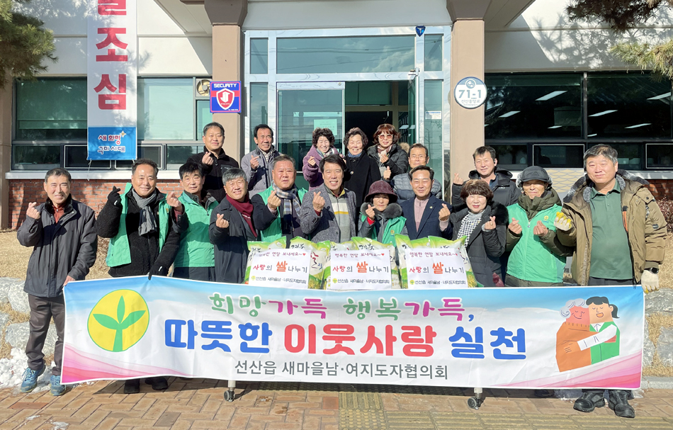 선산읍에서는 지난달 23일 선산읍 새마을 남·녀지도자협의회(회장 임응규, 회장 박윤옥) 주관으로 회원 30여명이 참여한 가운데 쌀(20kg) 약 50포를 어려운 이웃과 관내 지역아동센터 3개소 및 주간보호센터에 전달하는 자리를 가졌다.