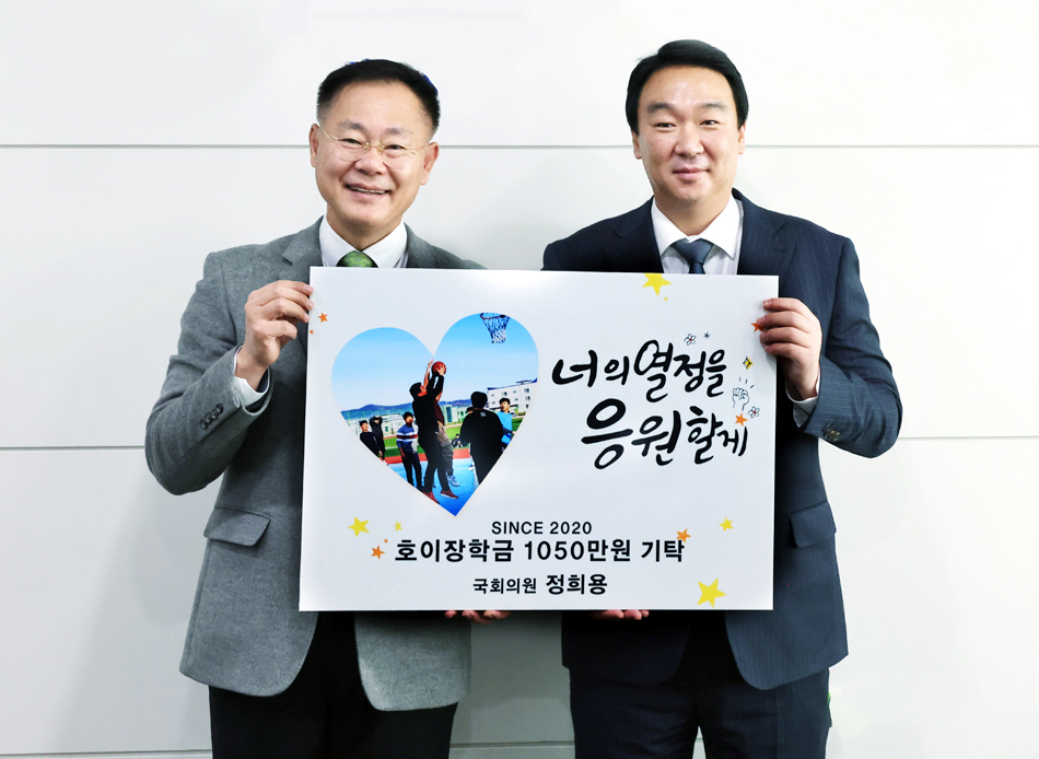 정 의원은 2020년 6월부터 2022년 12월까지 매월 100만 원을 자신의 지역구를 번갈아 가며 인재 육성을 위한 장학기금으로 쾌척했다.