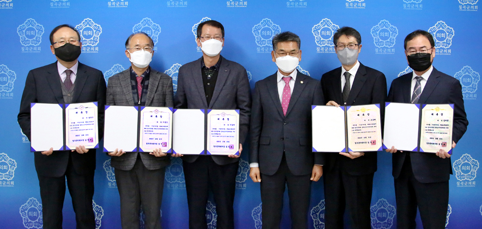칠곡군의회(의장 심청보)는 12월 21일 윤리심사자문위원회 위원 위촉식을 열고 윤리심사자문위원 5명에게 위촉장을 수여하였다.