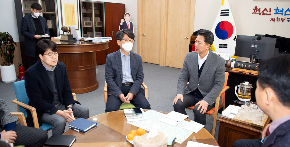 이번 LH 대구경북지역본부장 방문은 공단동 249번지 일원에 LH와 공동 시행 중인 ‘공단 도시재생혁신지구 조성사업’과는 별개로 1산단 내 방치되어 있는 유휴부지 활용, 신정부 국정과제 등을 반영한 신규사업 추진 협력방안 논의를 위해 마련된 것이다.