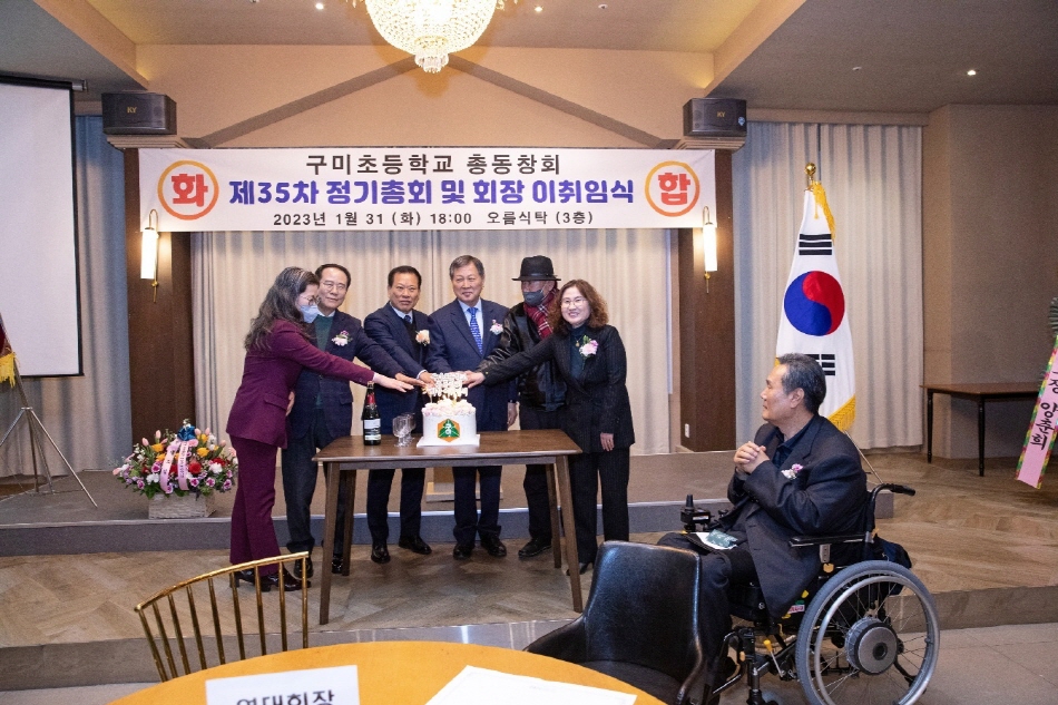 구미초등학교 총동창회(회장 민태기) 제35차 정기총회 및 회장 이·취임식이 지난 1월 31일 오름식탁에서 양춘희 구미초 교장, 김락환, 김철호 역대회장, 김영태 구미농협 조합장, 각 기별 회장 및 총무 등이 참석한 가운데 개최되었다.