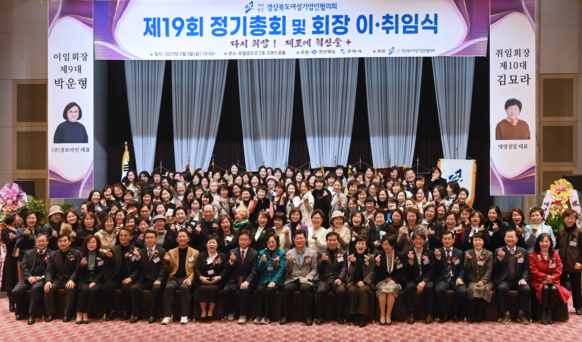 경상북도여성기업인협의회 회장 이ㆍ취임식이 지난 3일 금오산호텔에서 이철우 경북도지사, 김장호 구미시장, 구자근 국회의원, 안주찬 구미시의회 의장 및 회원 등이 참석한 가운데 개최되었다.