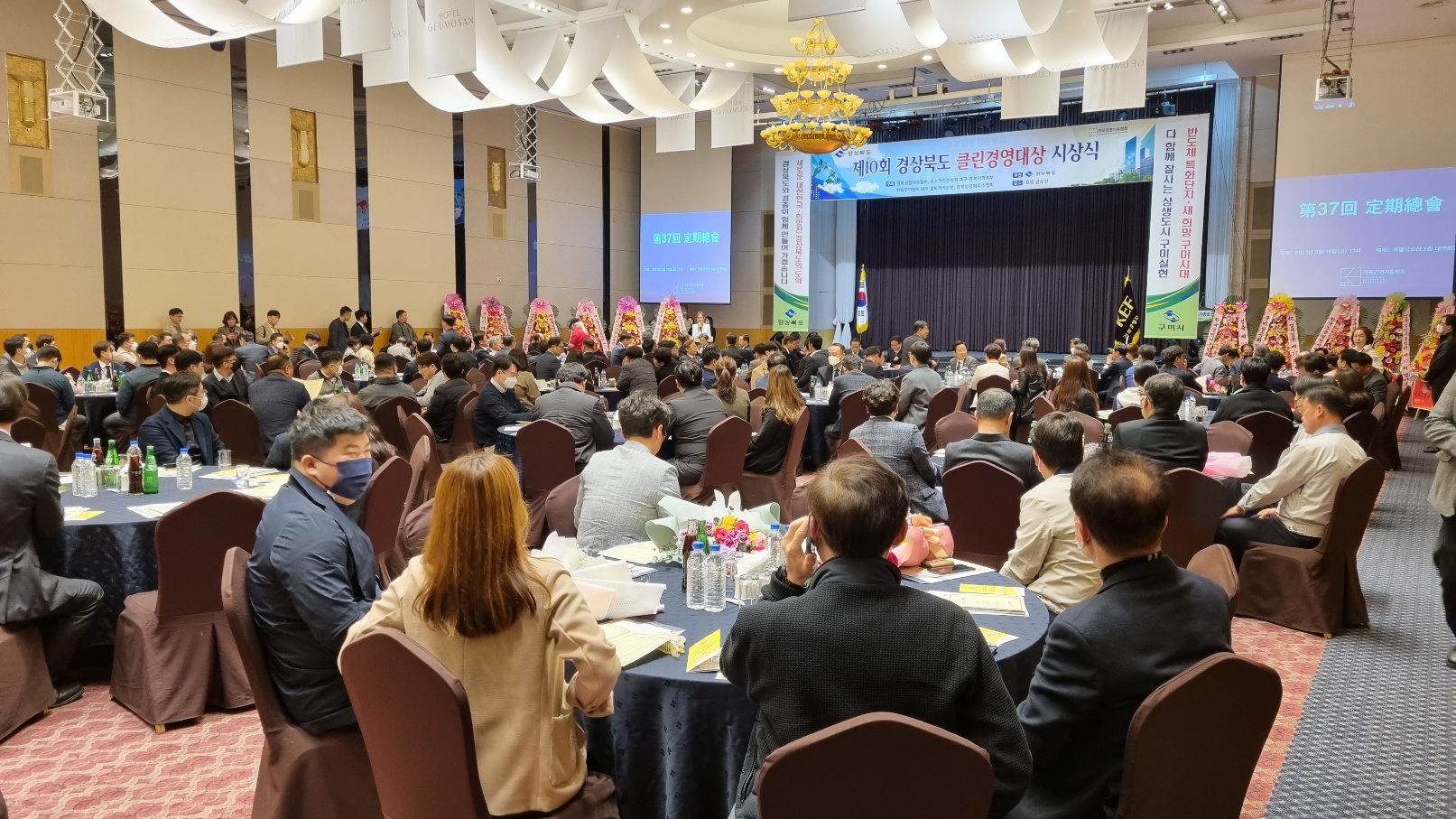 경북경영자총협회(회장 고병헌) 제37회 정기총회가 10일 호텔금오산 대연회장에서 이철우 경북도지사, 임종식 경북도교육감, 김장호 구미시장, 안주찬 구미시의회 의장, 권오탁 한국노총 경북본부 의장, 김규석 대구지방고용노동청장, 회원사 관계자 등이 참석한 가운데 성황리에 개최되었다.