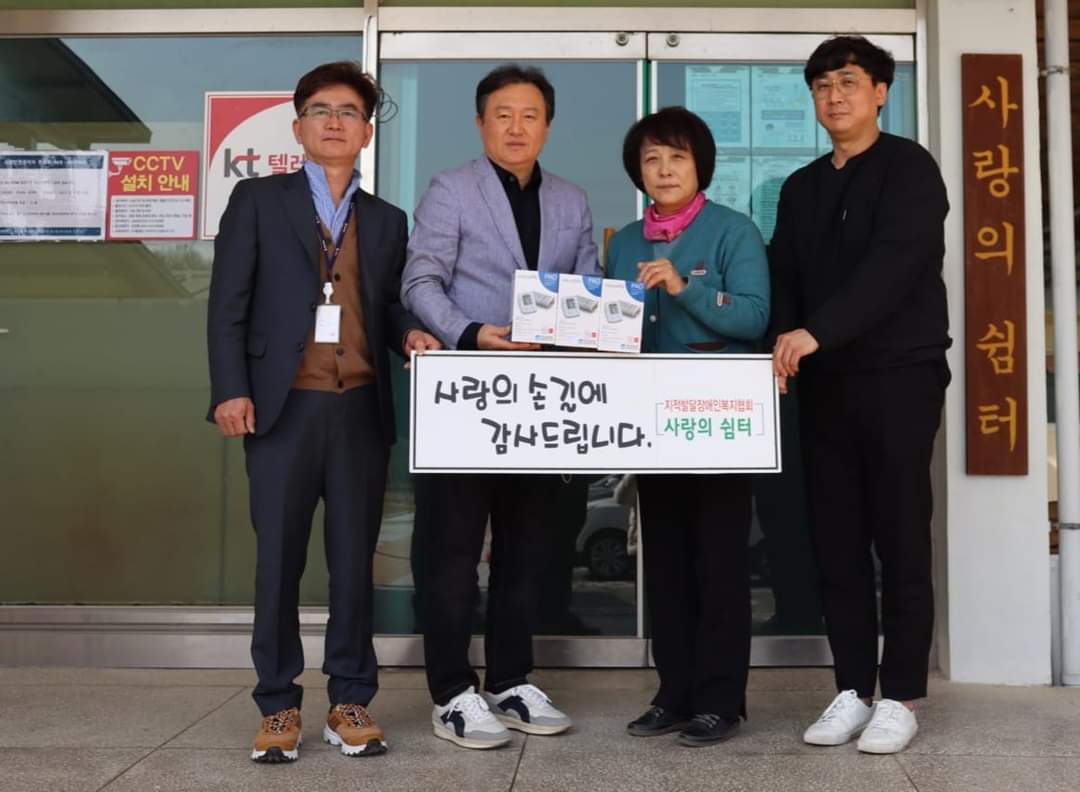 관내 의료기기 판매업체인 ㈜중원메디케어 안승표 대표가 지난 10일 한국지적발달장애인복지협회 경북협회 구미시지부가 운영하는 사랑의 쉼터에 전자혈압계를 기부했다.