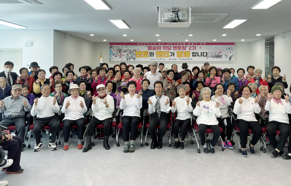 이날 행사는 봉숭아 학당 수료생 13명이 원룸 등 취약계층의 독거어르신을 1 : 3으로 발굴해 52명께 멘토링(1기) 결연증서를 드렸으며 1기 멘토링 대상자가 1 : 1 발굴, 독거 어르신 102명께 ‘2기 멘토링’ 행사를 개최하고 결연을 맺어 드렸다.