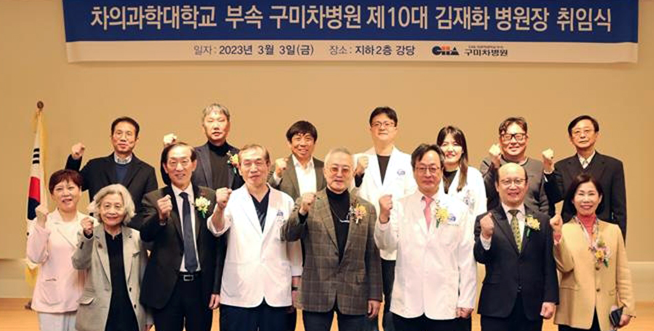 차의과학대학교 부속 구미차병원은 지난 3일 본원 강당에서 제10대 김재화 병원장 취임식을 개최했다.