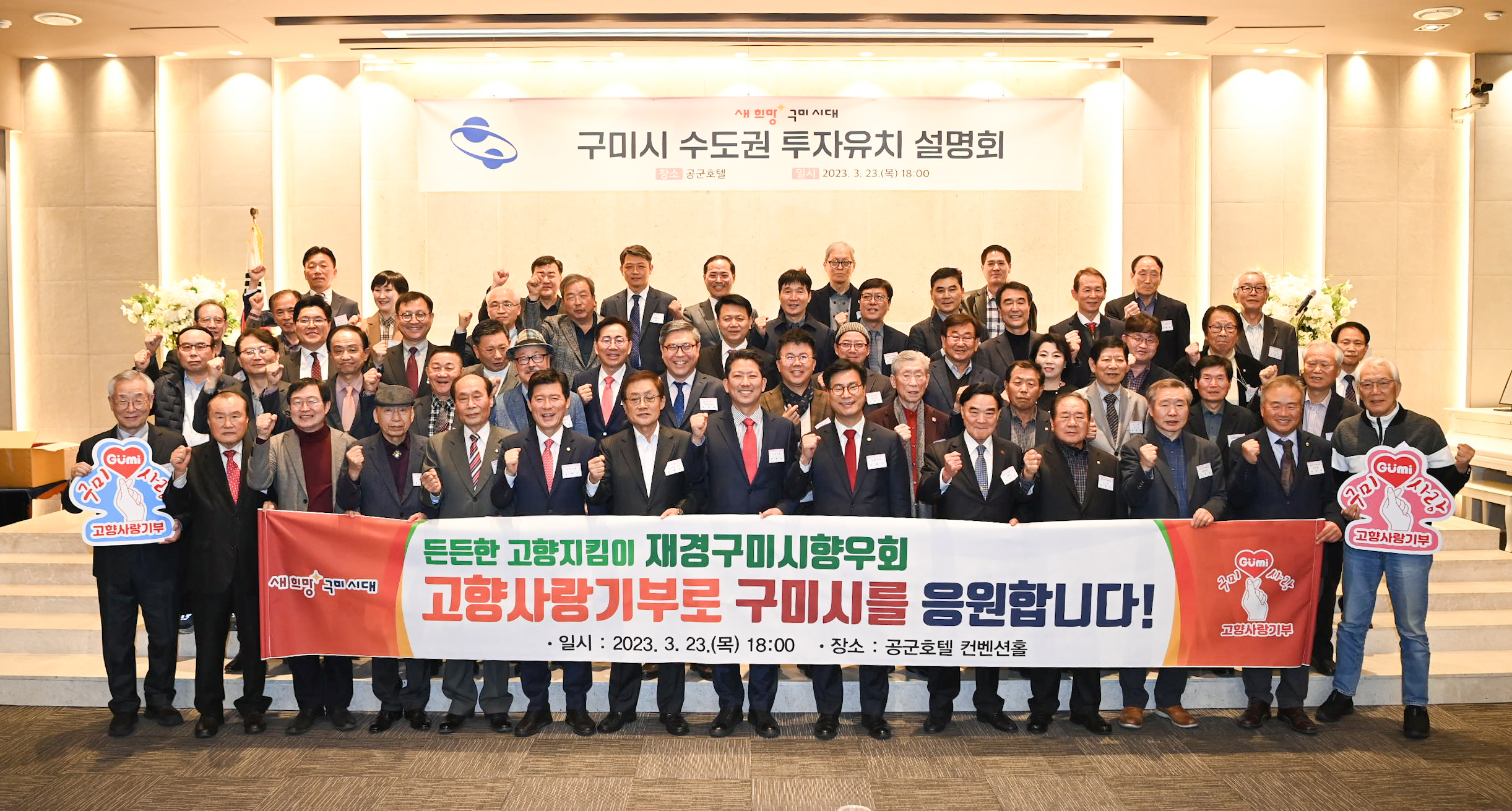 구미시는 수도권과의 교류 확대 및 투자유치 활성화를 위한 ‘재경출향인과 함께하는 구미시 투자유치설명회’를 지난 23일 서울 공군호텔에서 개최했다.