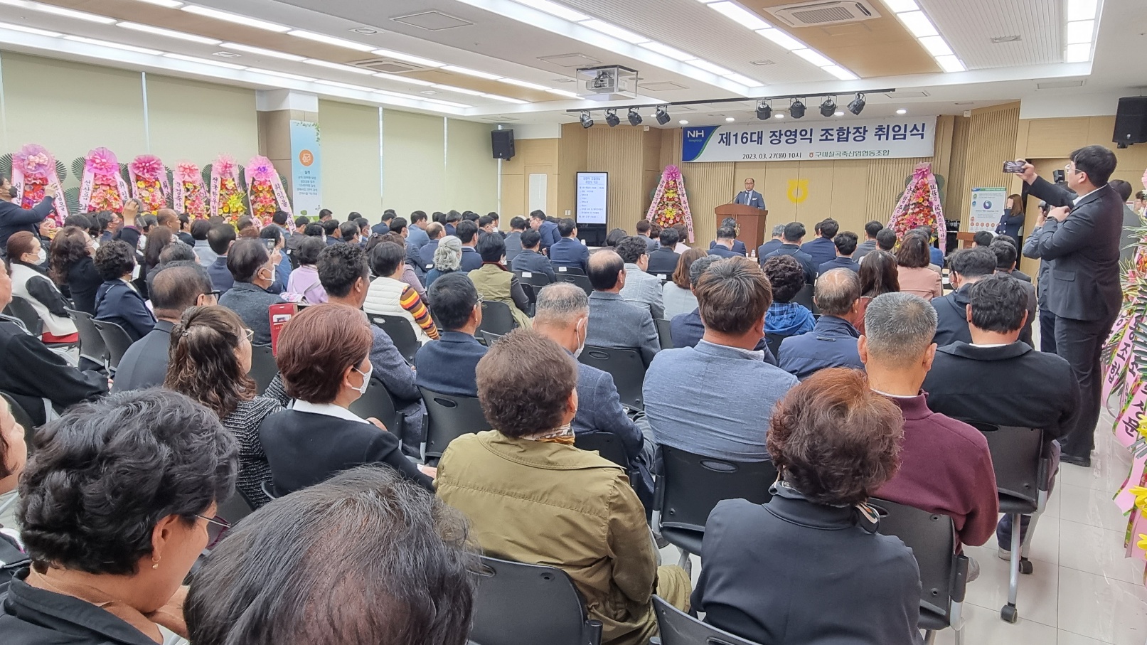 장영익 제16대 구미칠곡축산업협동조합 조합장 취임식이 27일 축협 본점에서 김장호 구미시장, 이재호 농협중앙회 구미시지부장, 윤종호, 김용현 경북도의원, 박세채, 김영태, 김영길, 양진오, 장미경, 김원섭, 김민성, 김정도, 정지원 시의원, 농협 조합장, 축협 관계자 및 조합원 등이 참석한 가운데 성황리에 개최되었다.