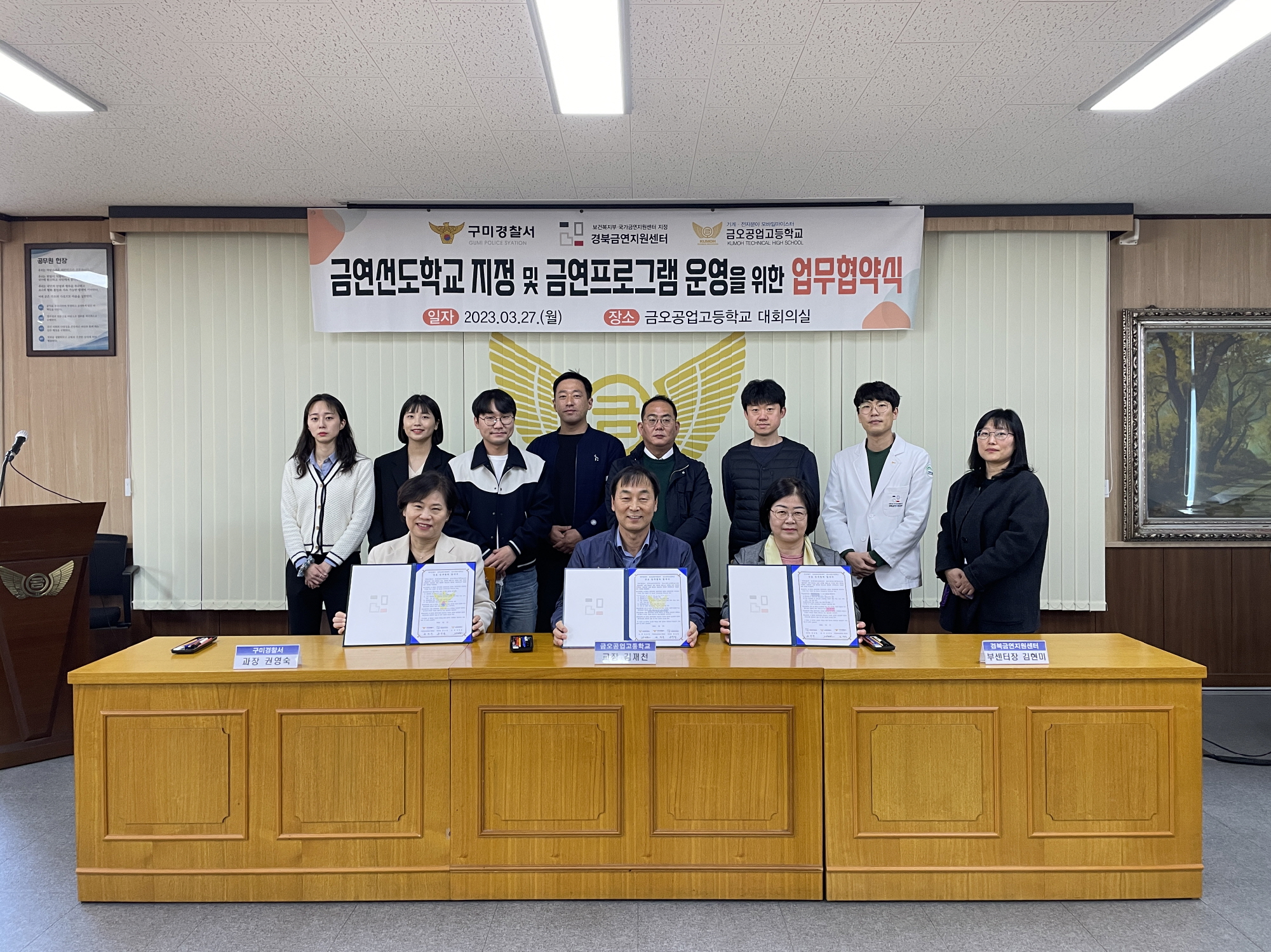 구미경찰서(서장 장종근)는 청소년 흡연 문제를 해결하기 위해 지난 27일 금오공업고등학교, 안동의료원 경북금연지원센터와 업무협약(MOU)을 체결했다.
