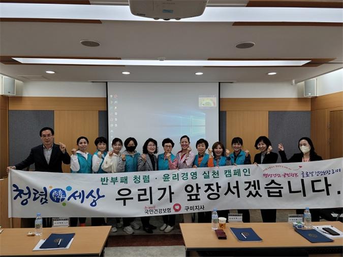 국민건강보험공단 구미지사(지사장 이상화)는 지난 29일 국민의 건강수준을 향상시키고 건강생활실천 유도 및 건강행태 개선을 위해 선발된 건강백세운동교실 강사들과 함께 ‘반부패·청렴 및 윤리경영 실천 캠페인’을 실시했다.