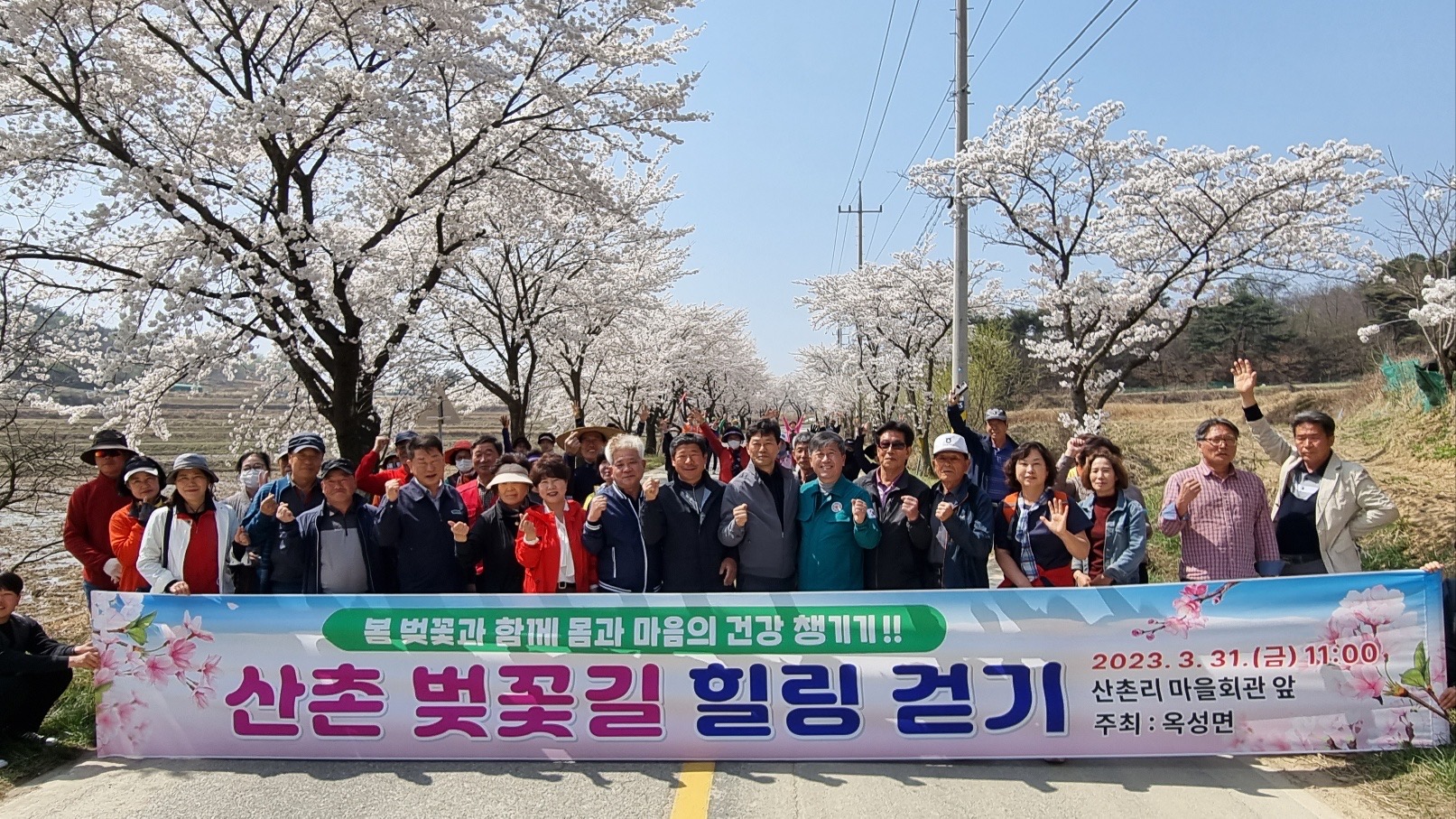 옥성면(면장 박주영)은 지난 31일 옥성면 산촌리에서 지역 기관단체장과 주민 200여 명이 참여한 가운데 ‘산촌 벚꽃길 힐링 걷기’를 개최했다.