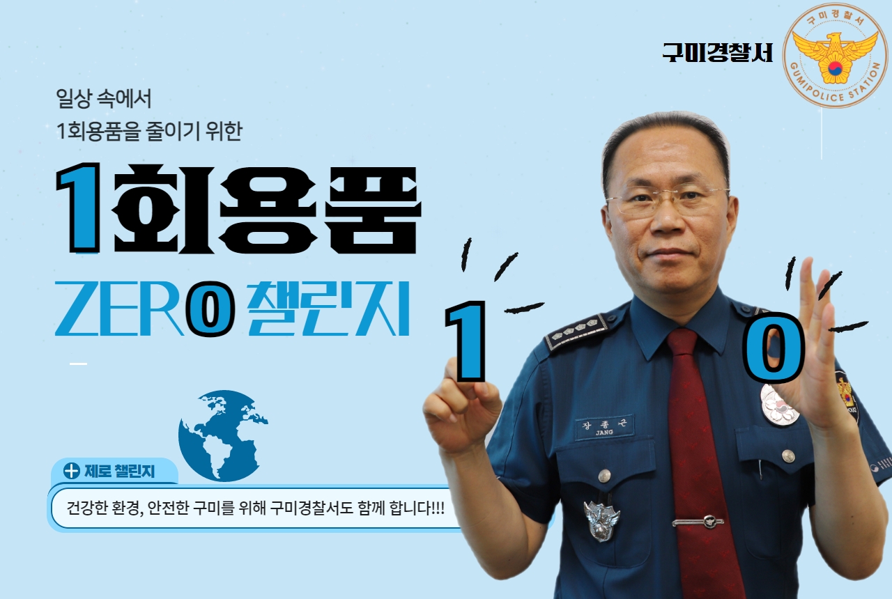 장종근 구미경찰서장은 지난 30일 일회용품을 줄이고 지구 환경을 살리기 위한 ‘1회용품 제로 챌린지’ 캠페인에 동참했다.