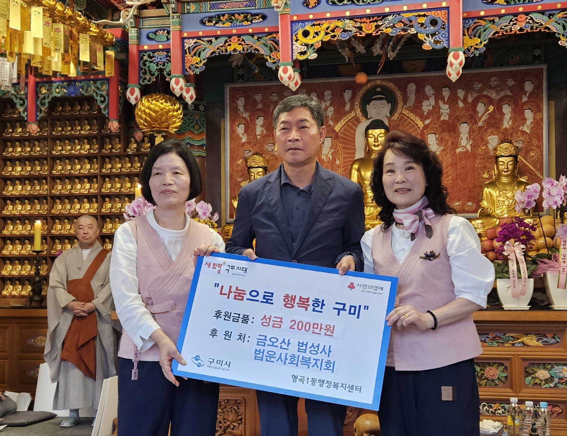 금오산 법성사 법운사회복지회(이사장 무애 스님)는 지난 27일 관내 도움이 필요한 이웃을 위해 형곡1동에 200만원, 선주원남동과 양포동에 300만원의 성금을 각각 기탁했다.