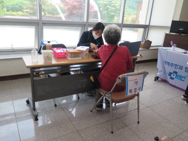 김천의료원에서는 정형외과·신경외과·가정의학과 의사와 직원 등 17명이 참여하여 기초 건강사정·임상병리 검사로 만성질환자 건강상태를 확인하고, 방사선(엑스레이)·초음파 장비로 세밀하고 정확한 진단결과를 도출하여 유소견자 발견에 힘을 썼다.