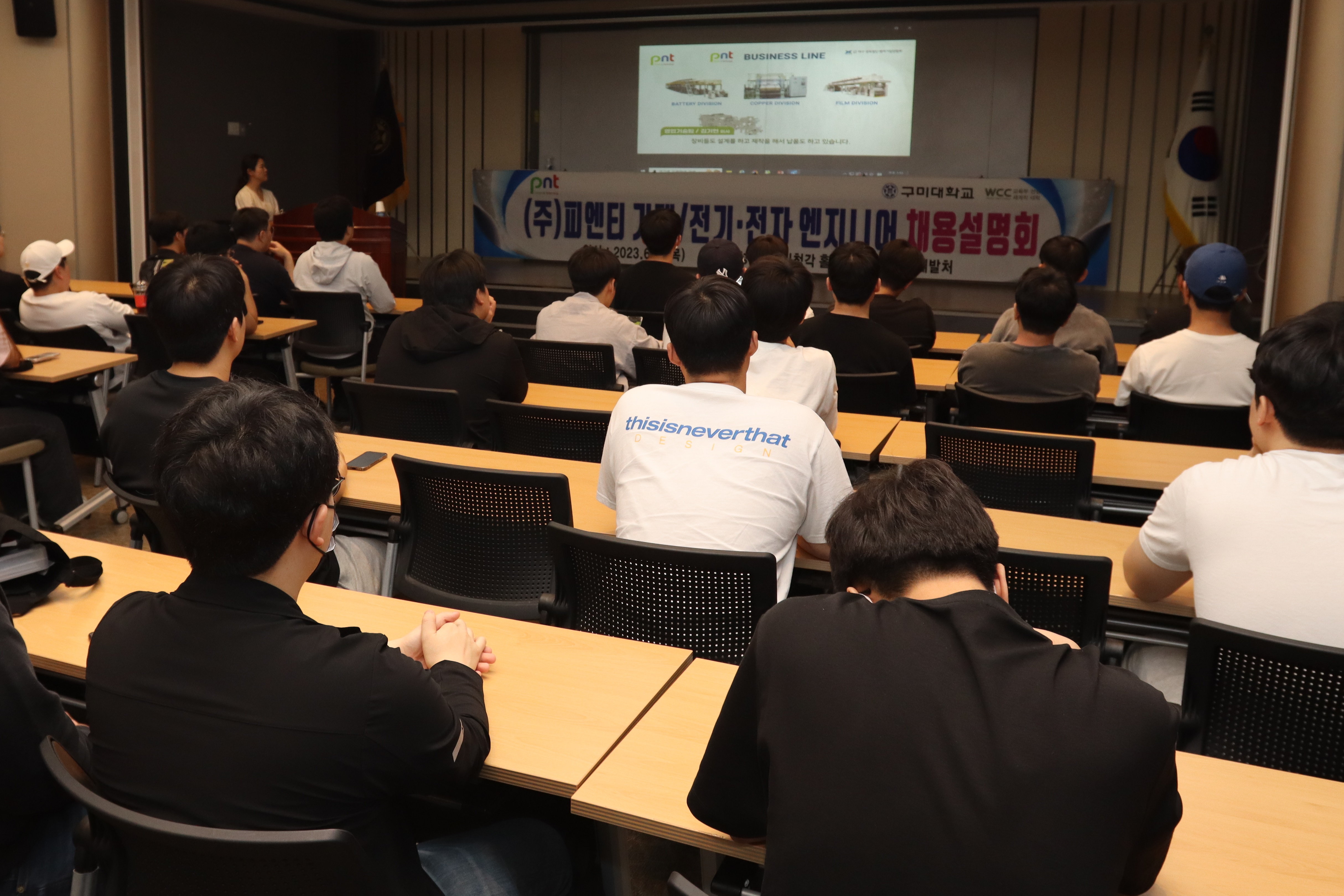 6월 1일 구미대 성실관 시청각실에서는 130여 명의 재학생들이 참가한 가운데 ㈜에코프로비엠과 ㈜피엔티 채용설명회가 열렸다. 이들 기업들은 각각 30명의 학생들을 채용할 예정이다.