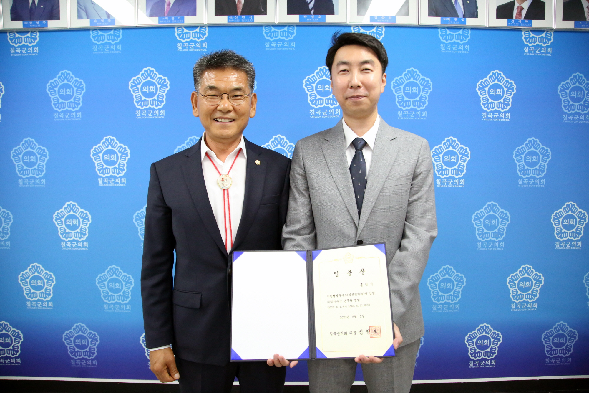 칠곡군의회(의장 심청보)는 지난 1일 의장실에서 정책지원관에게 신규임용장을 수여했다.
