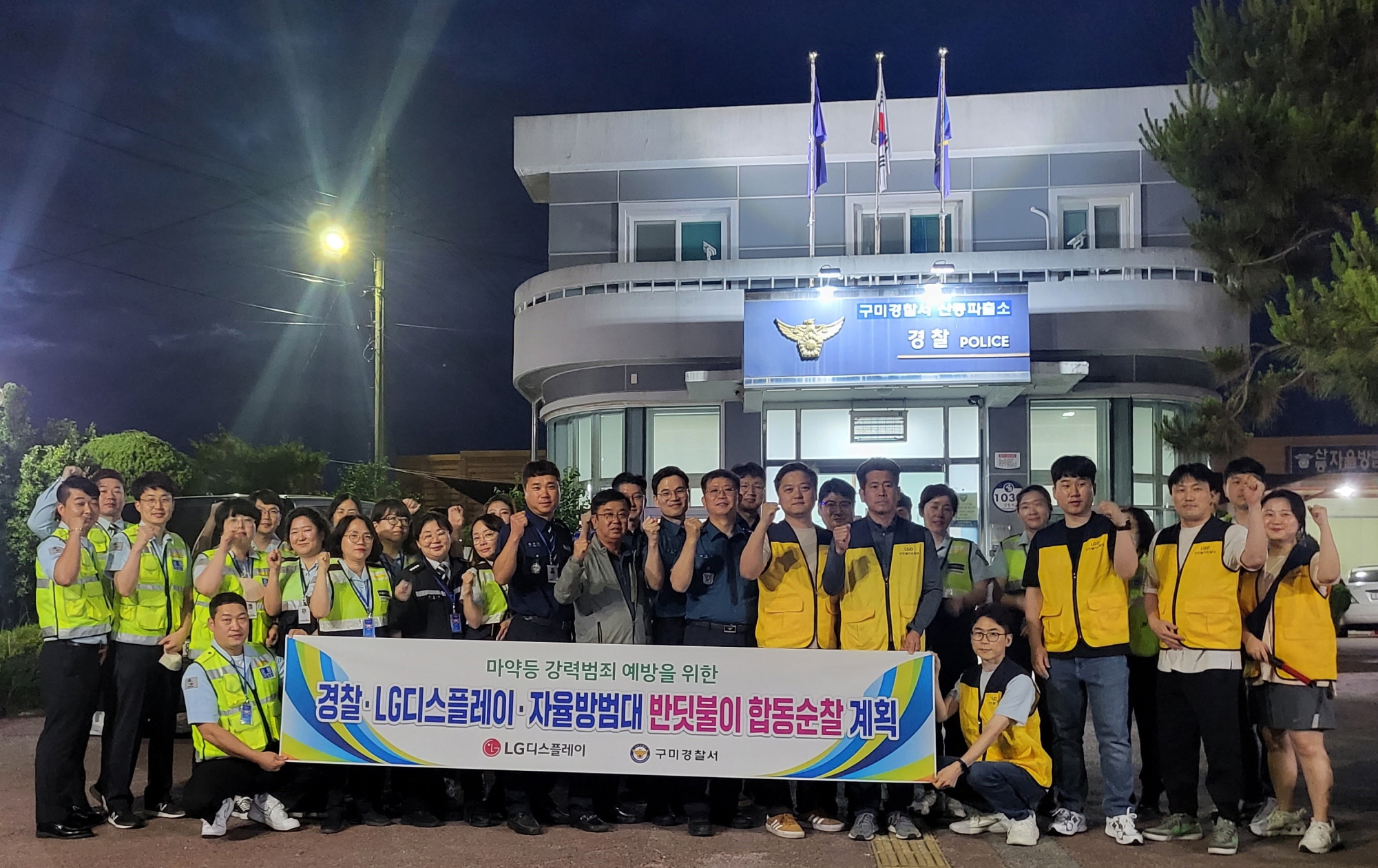 이번 합동순찰에는 LG디스플레이 임직원, 산동파출소 자율방범대, 생활안전협의회, 경찰 등 30여명이 참여한 가운데 최근 마약 범죄 등으로 사회적 불안감이 커짐에 따라 마약 근절 포스터를 배부하는 등 범죄 예방 활동을 펼쳤다.