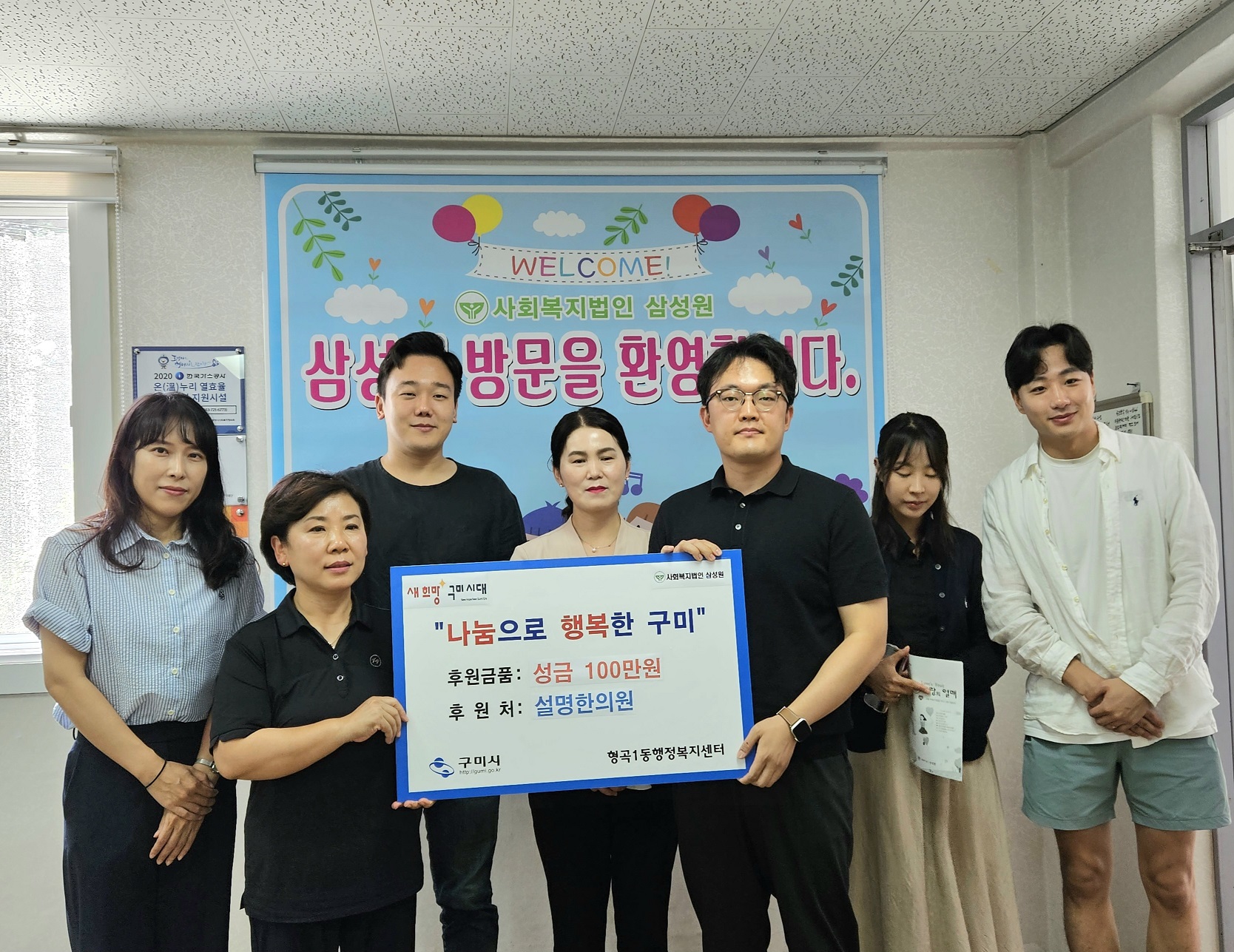 형곡1동(동장 최성국)에서는 지난 8일 설명한의원(원장 안지명)이 아동양육시설 삼성원 입소 아동들을 위한 성금 100만원을 기탁했다.
