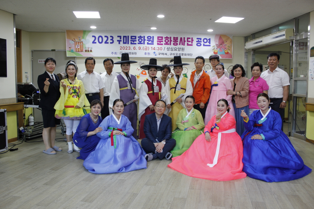 구미문화원(원장 라태훈)에서 문화강좌 수강생들이 중심이 되어 활동하는 구미문화봉사단이 6월 9일 성심요양원에서 어르신들을 위한 문화봉사공연을 가졌다.