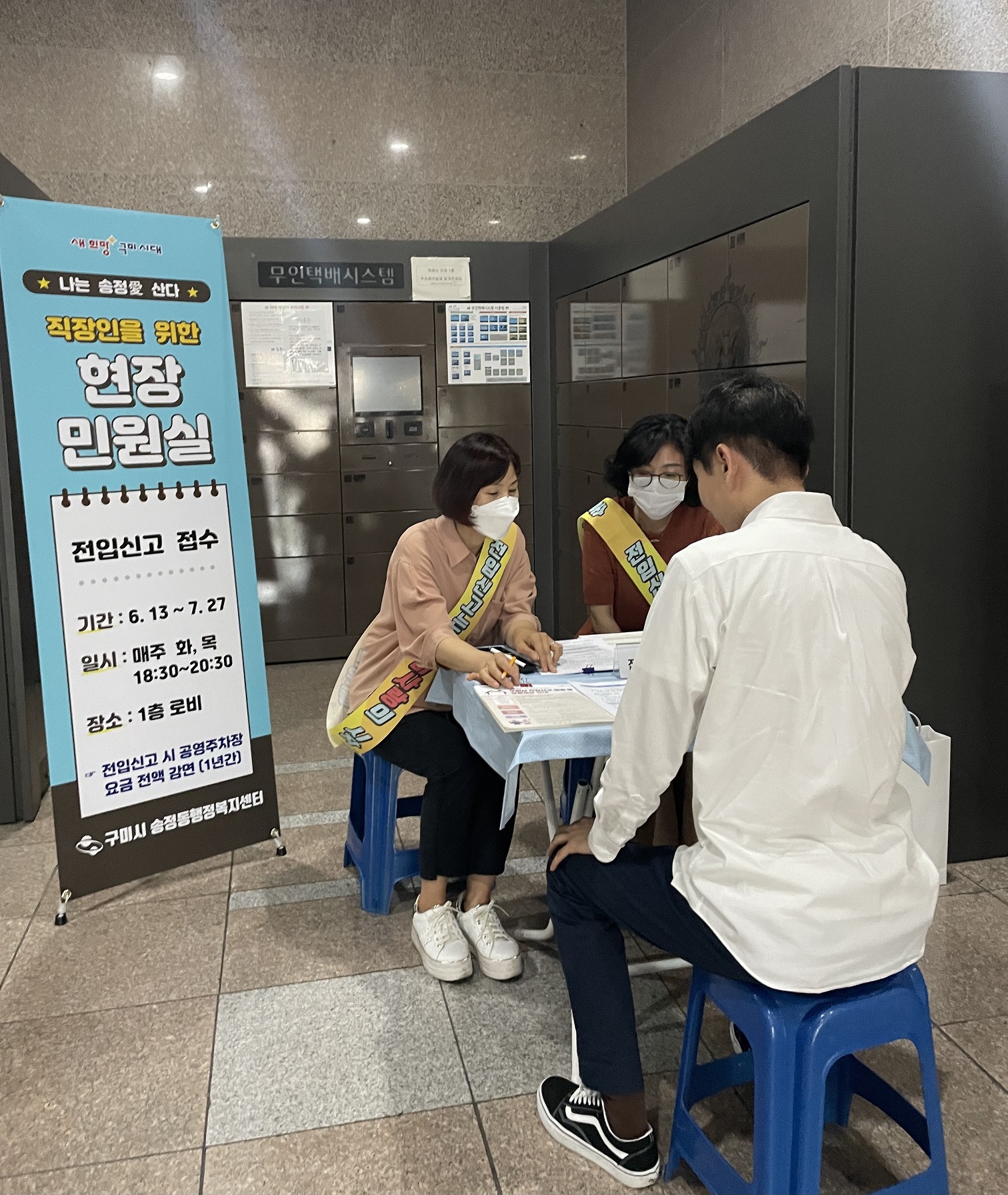 한편, 김용수 동장은 현장민원실 운영에 협조해준 오피스텔 관계자들에게 감사의 뜻을 표하며 “이번 현장민원실을 통해 올바른 주소갖기에 대한 동참 분위기 확산 및 인구회복을 위한 전입신고 홍보에 적극적인 협조를 부탁드린다.”고 당부했다.
