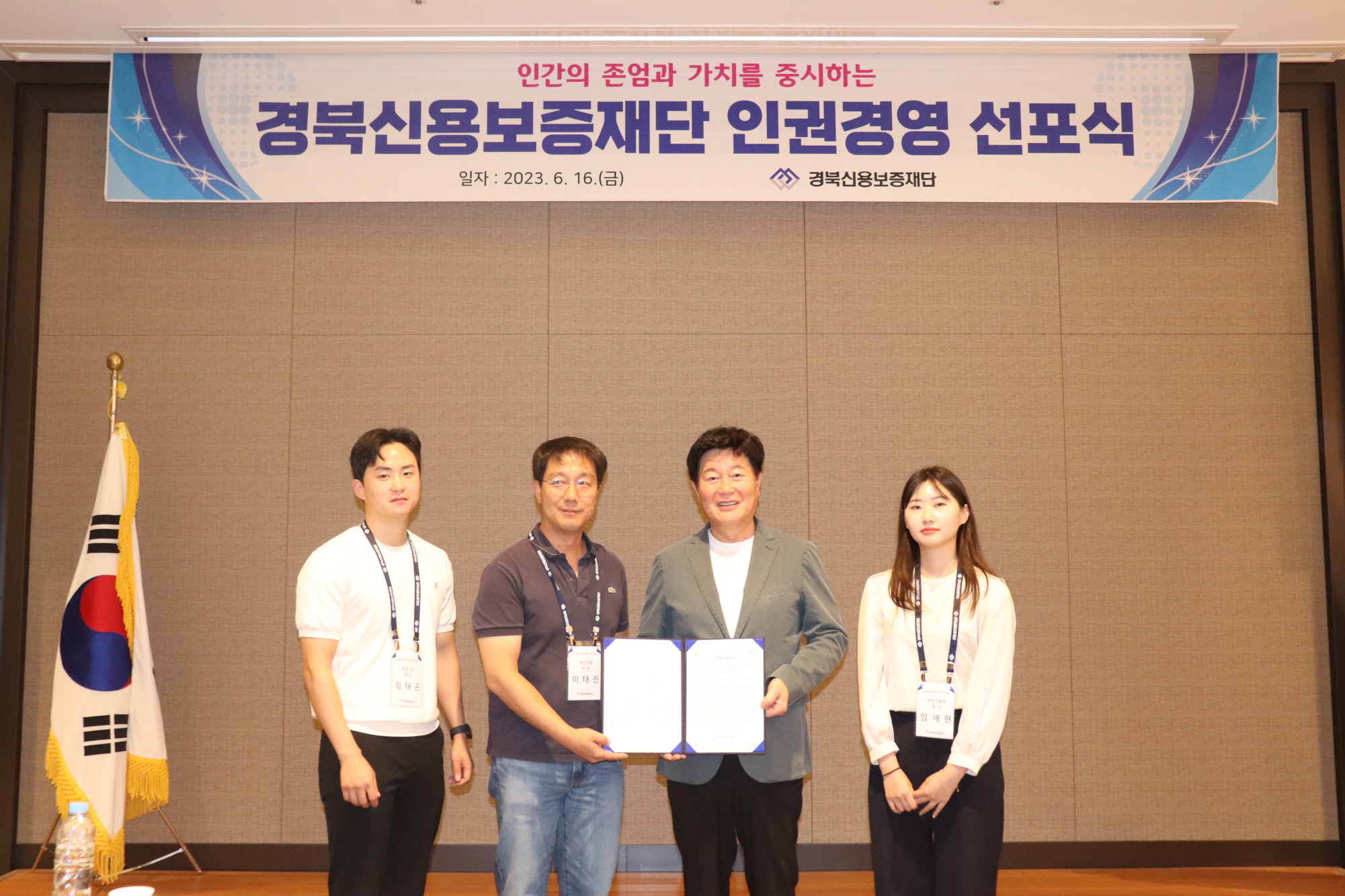 경북신용보증재단(이사장 김세환)은 지난 16일 김세환 이사장과 재단 임직원 80여명이 참석한 가운데 ‘2023년 인권경영 선포식’을 개최했다.