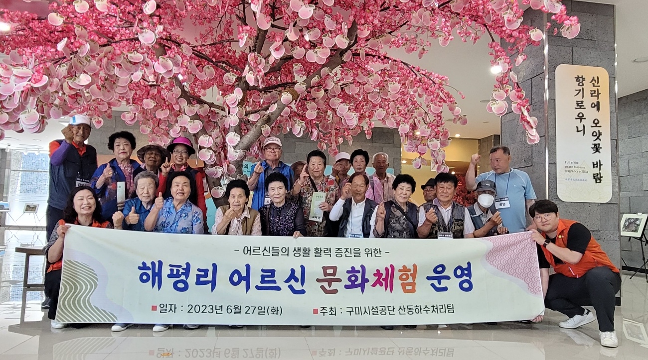 산동하수처리팀은 노년층 삶의 질 향상과 노인 여가 문화 활성화를 위해 공단의 시설인 구미시승마장 견학, 신라불교초전지 사찰음식체험과 향낭 만들기 등 어르신들이 문화활동의 주체로서 적극 참여할 수 있도록 하여 문화체험을 통한 생활 활력 증대를 도모했다.