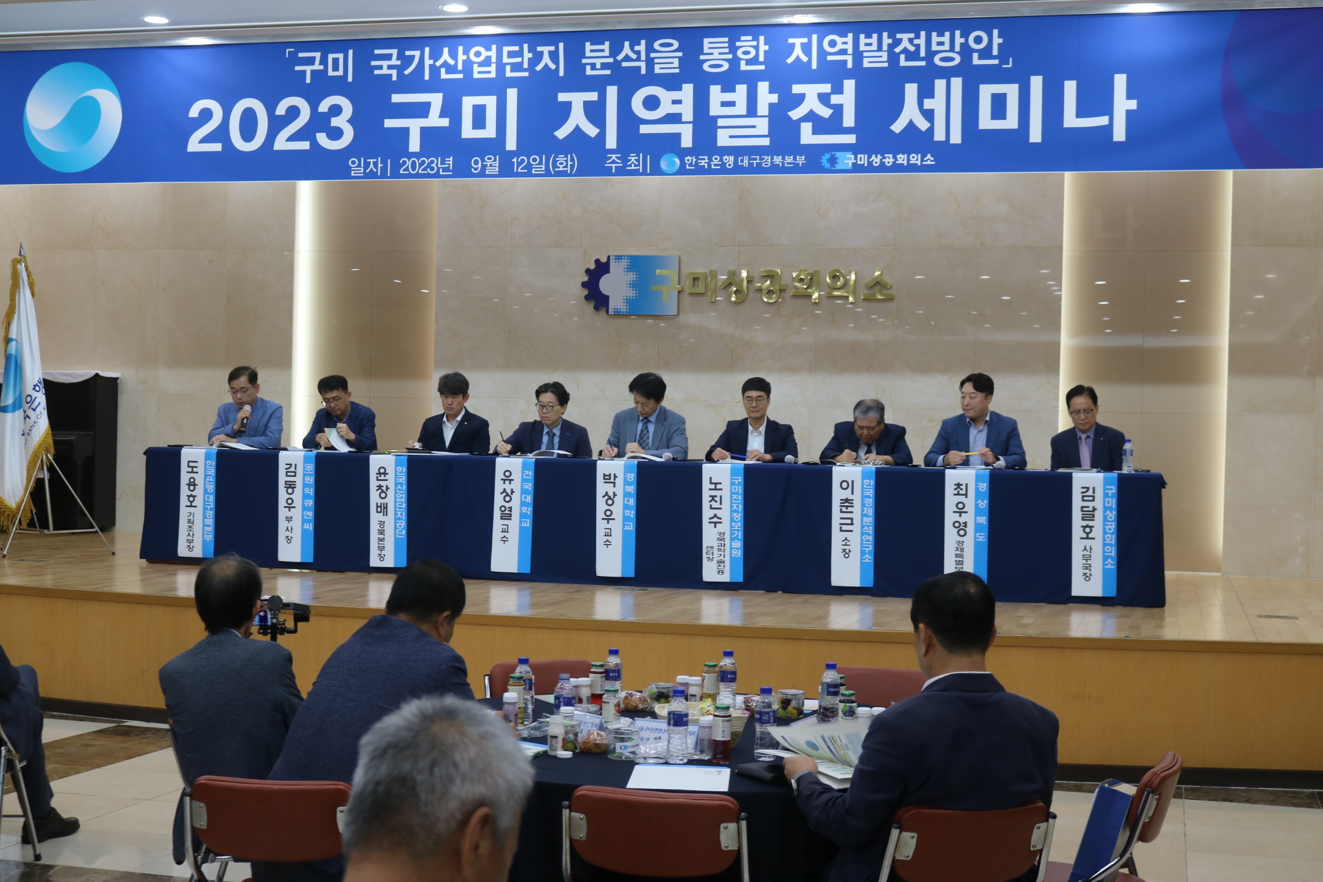 이번 세미나는 권태용 한국은행 대구경북본부장의 개회사, 윤재호 구미상공회의소 회장의 환영사, 김장호 구미시장의 축사에 이어 ‘구미 국가산업단지 분석을 통한 지역발전방안’에 대한 주제발표와 패널토론, 질의응답 및 폐회 순으로 진행되었다.