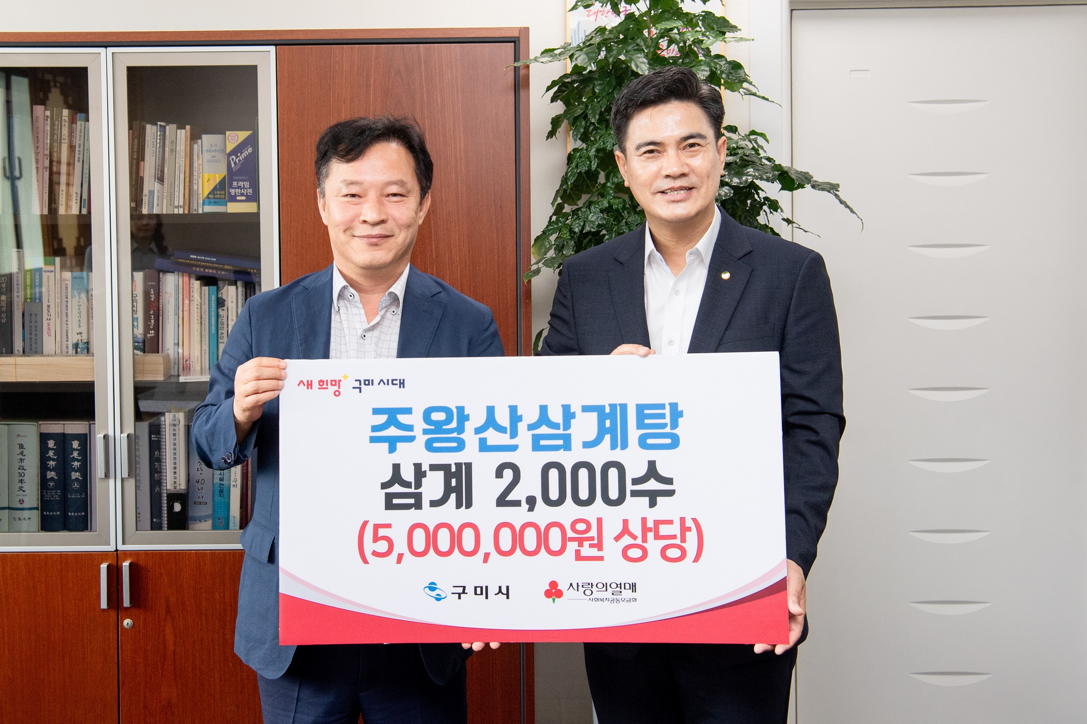 주왕산삼계탕(조중래 대표)는 12일 삼계 2,000수(500만 원 상당)와 장학금 200만 원을 구미시에 전달했다.