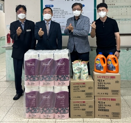 이날 이성희 교육장은 복지시설 입소자들을 위한 휴지, 세제, 락스 등 생활필수품을 전달하는 의미 있는 시간을 가졌다.