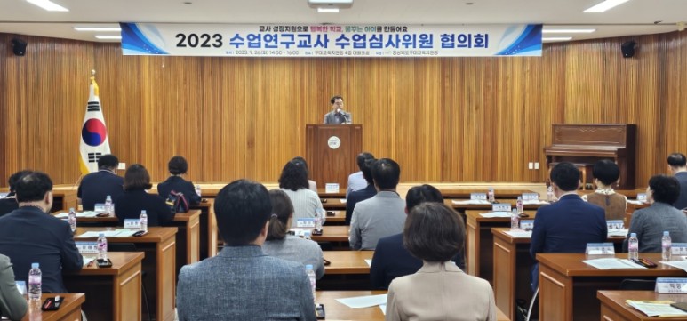 이날 연수는 단계적 지속적 수업력 신장을 통한 수업 실천 전문가를 육성하고 이들이 교실수업개선의 선도적 역할을 수행함으로써 학생 주도형 수업을 확산하기 위한 목적으로 시행되고 있는 2023학년도 유․초등 수업전문가 육성의 일환으로 수업연구교사들의 공정한 수업심사를 위해 마련되었다.