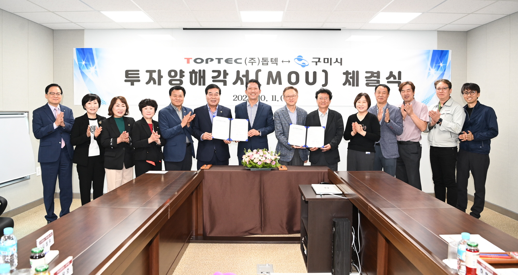 구미시는 11일 ㈜톱텍 본사에서 이차전지 자동화 장비 제조라인 신설 투자양해각서(MOU)를 체결했다.