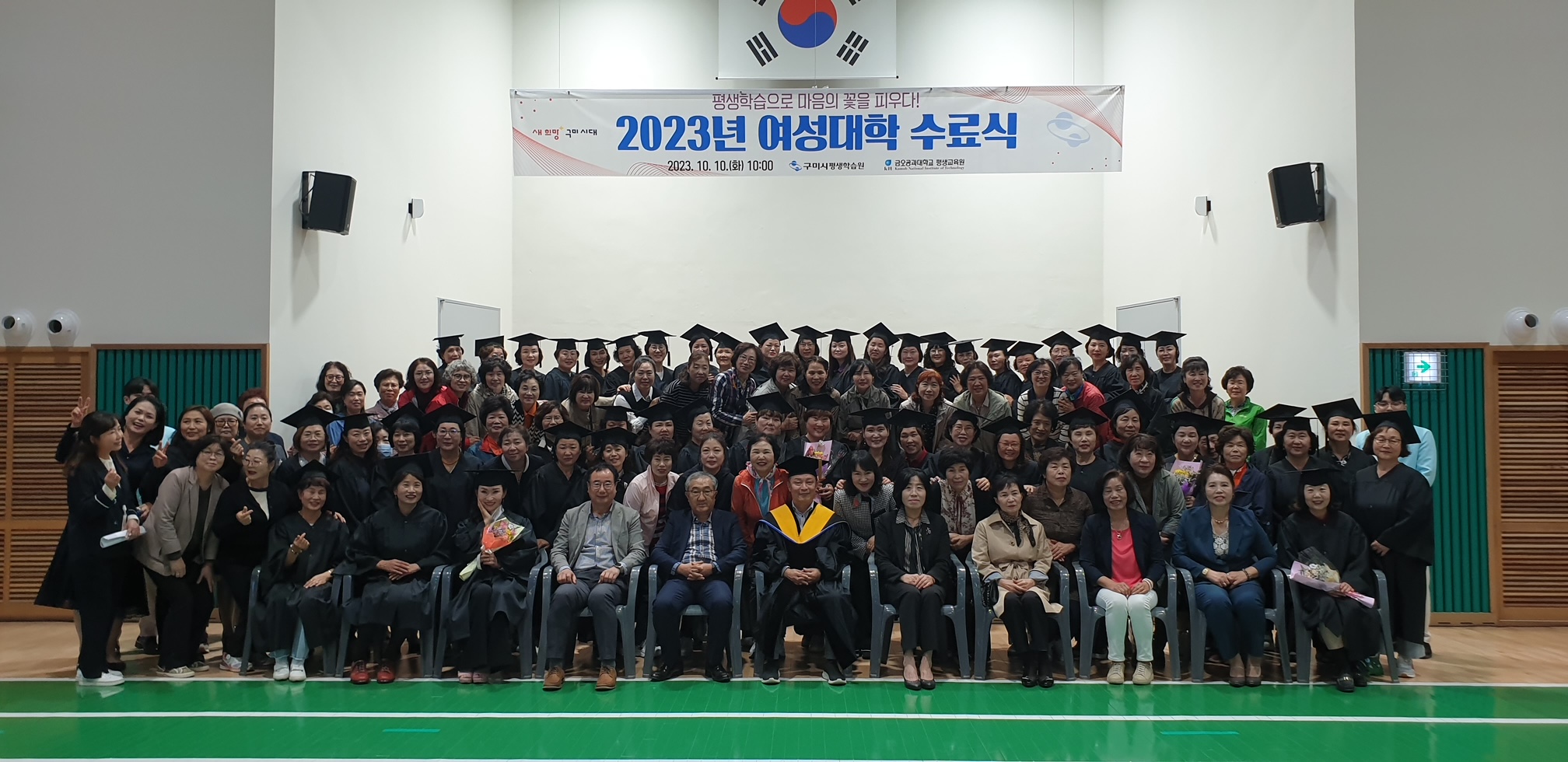구미시는 지난 10일 금오공과대 신평캠퍼스 실내체육관에서 수료생, 여성대학 총동문회장 등 임원 100여 명이 참석한 가운데 2023년 여성대학 수료식을 열었다.